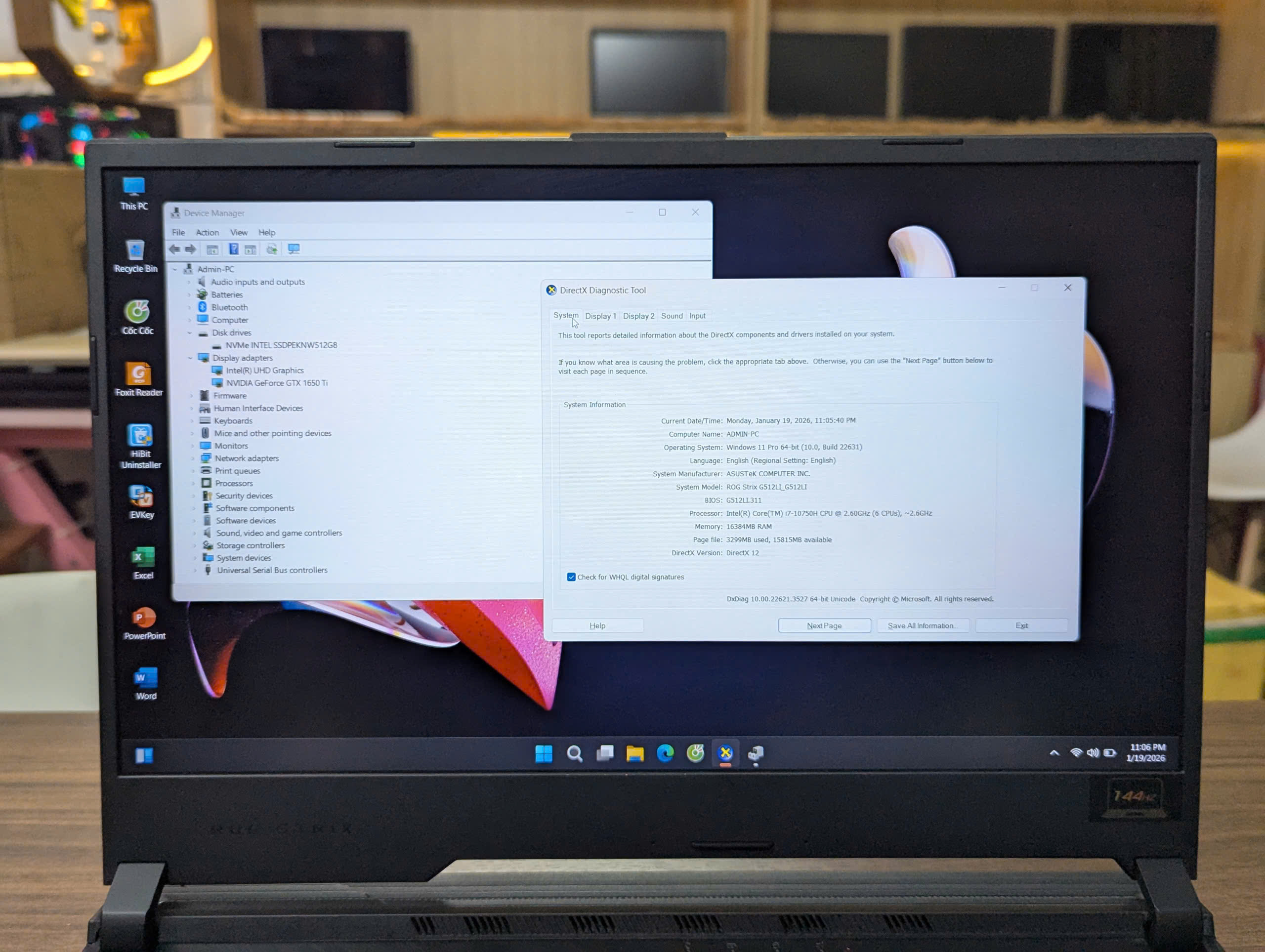 + CPU I7-10750H / Ram 16GB / Ssd Nvme Intel 512GB / Màn 15.6inch FHD 144Hz / Card GTX 1650Ti 4GB / Pin 90/100%