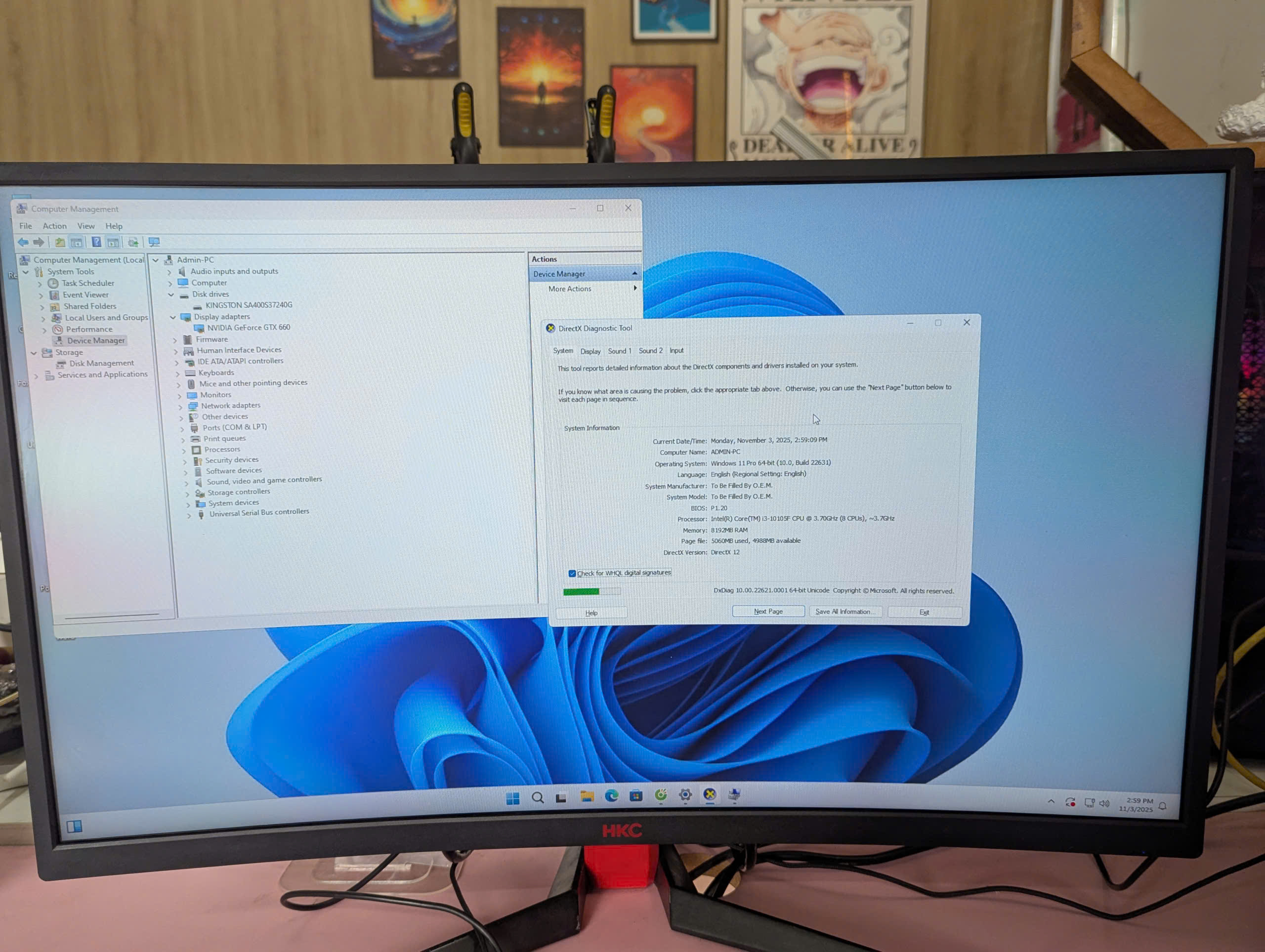 + CPU I3-10105F / Ram 8GB / Ssd 240GB / Card đồ hoạ GTX 660 2GB / Nguồn cst 450W / Màn 27inch FHD Cong 120Hz