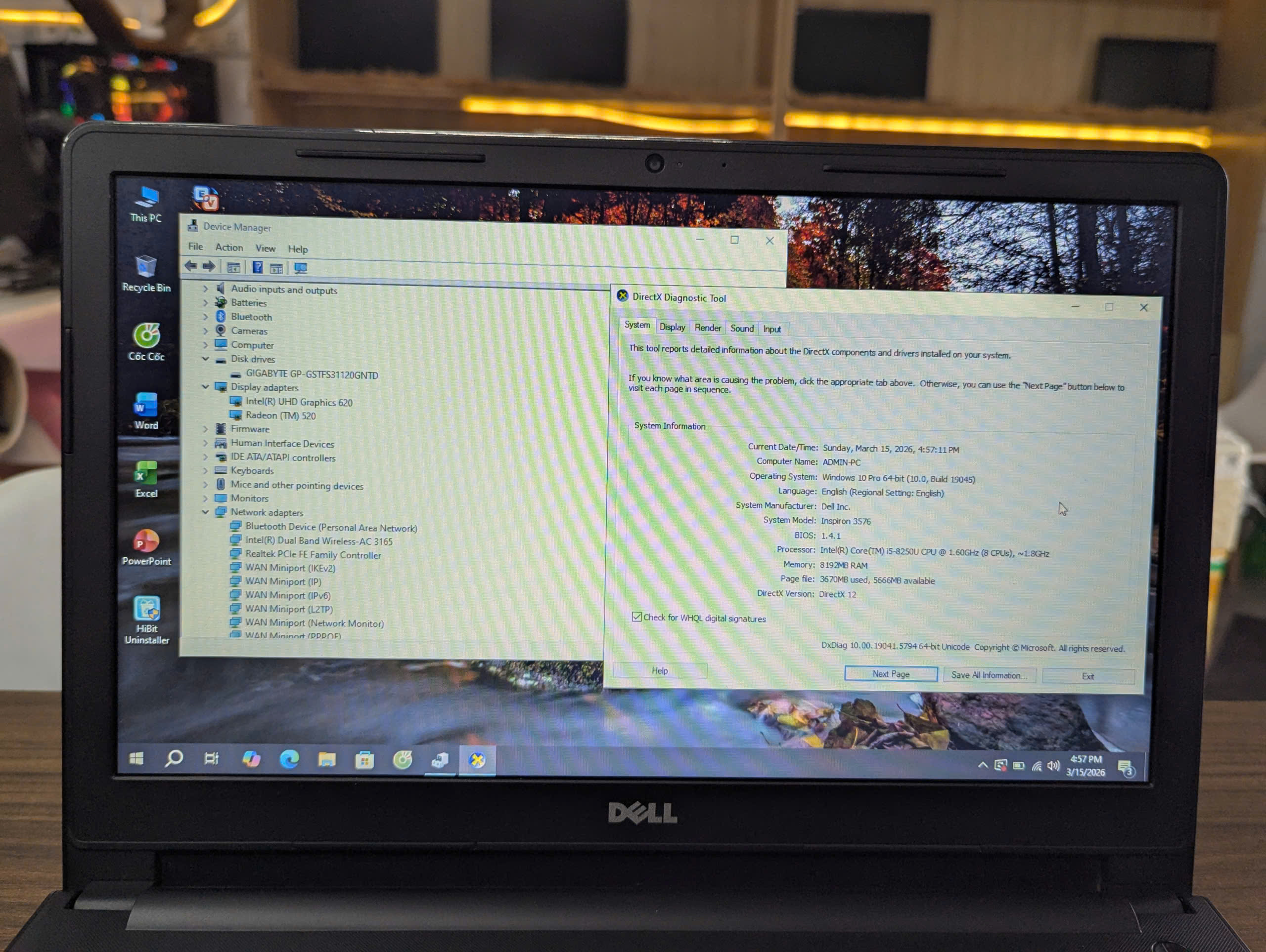 Dell Inspiron 3576 Máy Zin Đẹp 90% : CPU I5-8250U/ RAM 8GB/ SSD 120GB/ CARD ĐỒ HOẠ 2GB/ MÀN 15.6INCH
