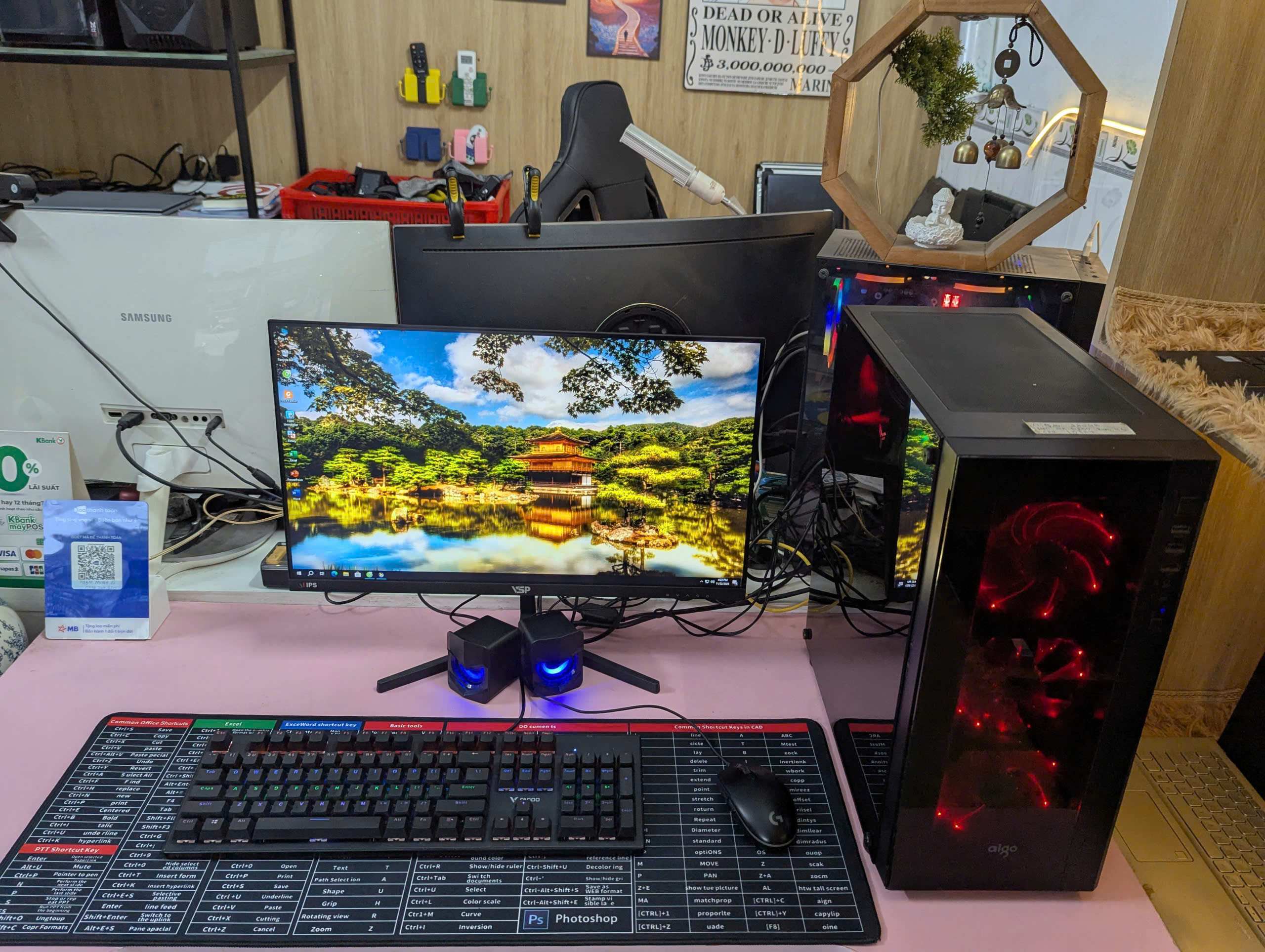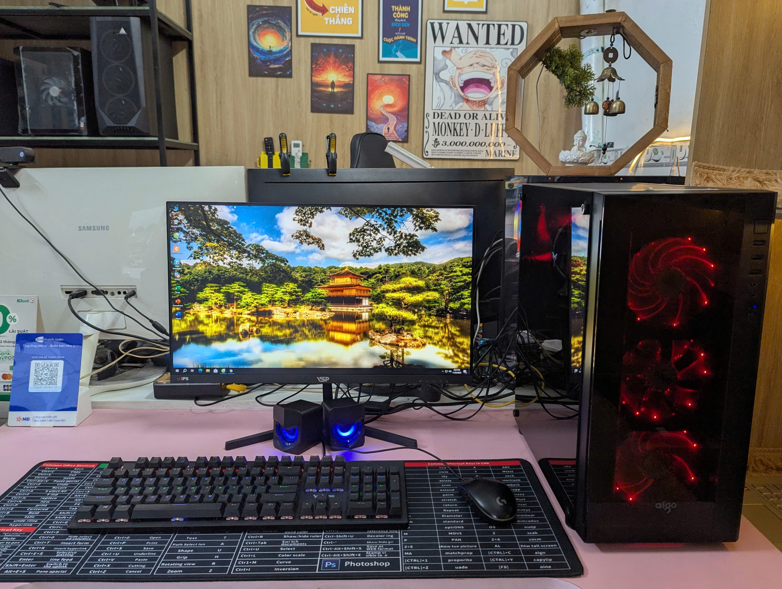 + Màn VSP 24inch FHD tràn viền + Case kính 4 Fan led